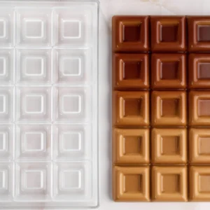 Choco bar mould Choco bar size: mm 154x77x11 h ~ 100 g Mould size: mm 275×175 3 indents BPA free