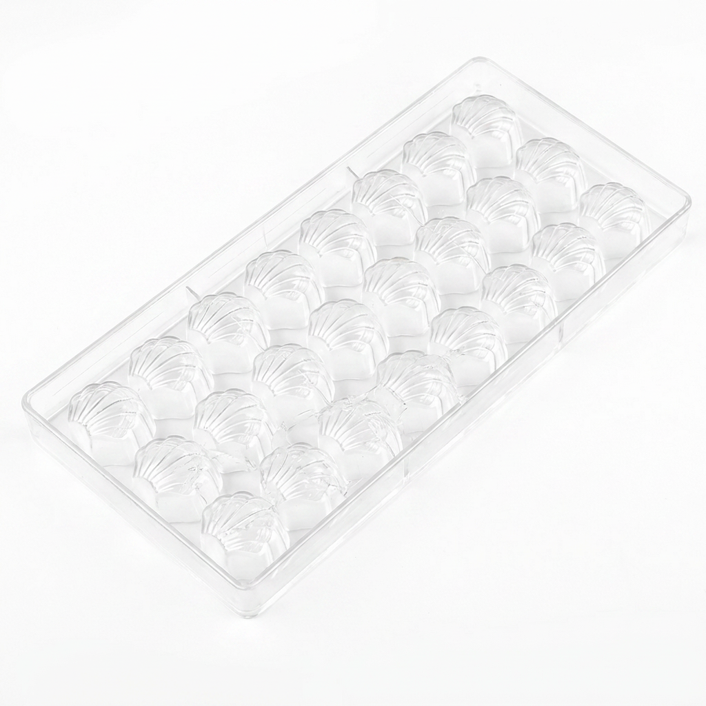 Elegant Scalloped Shell Design: Features 24 detailed shell-shaped cavities, creating beautiful pralines, bonbons and chocolates, ideal for gifts, parties, weddings and special occasions.
